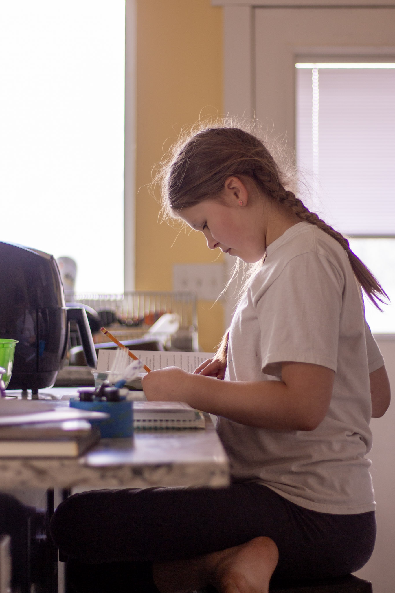 My choice today to take a step back and focus more on learning a new skill than teaching new skills was not without it’s repercussions. Without constant guidance my oh so clever and creative youngest daughters made a whole family of plastic silverware people with a whole backstory of their very complicated interconnected lives. There were also new “skincare” products made and tested in the bathroom, and the pile of towels and miscellaneous laundry in the laundry room is still not folded and put away.