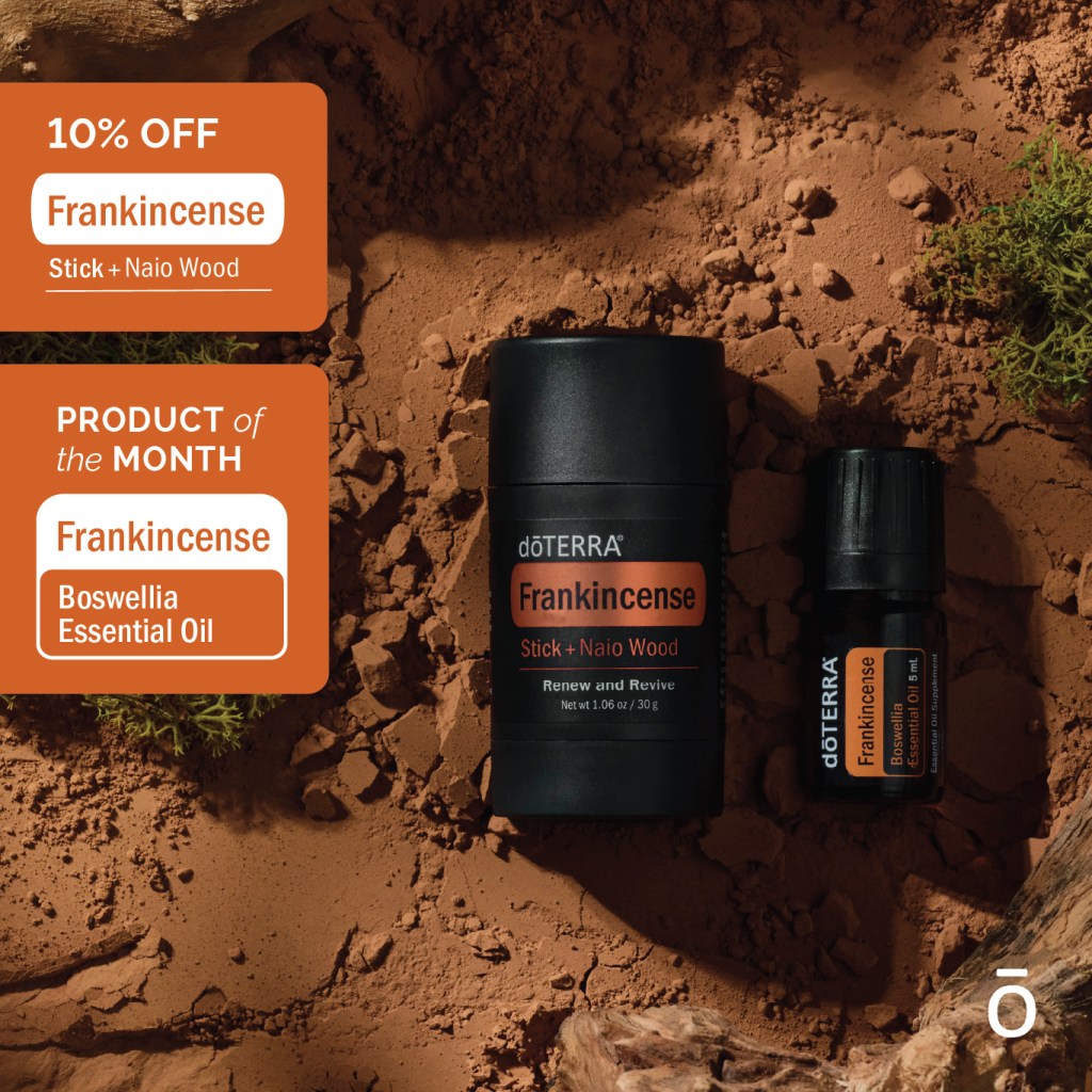 10% off Frankincense Stick + Naio Wood. Free 5 mL bottle of Frankincense with 125 PV rewards order by June 15th!